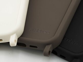 • Coque de téléphone couleur taupe avec système d’anneaux, modèle Ambrée