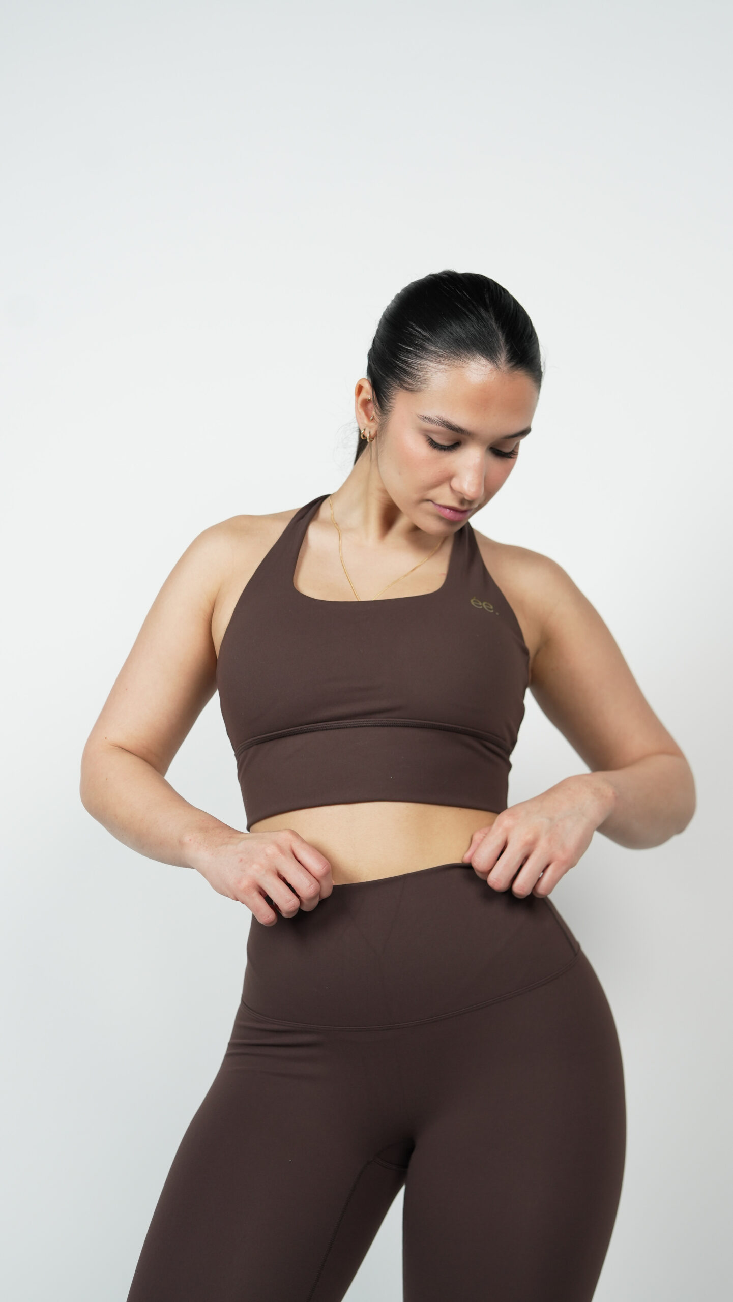 Le Legging Glow Club – Marron Intense | ambrée. combine maintien sculptant, liberté de mouvement et élégance minimaliste. Sa teinte marron profonde apporte une touche naturelle et sophistiquée, parfaite pour un look athleisure moderne. Sa matière douce et stretch épouse le corps et procure une sensation seconde peau.