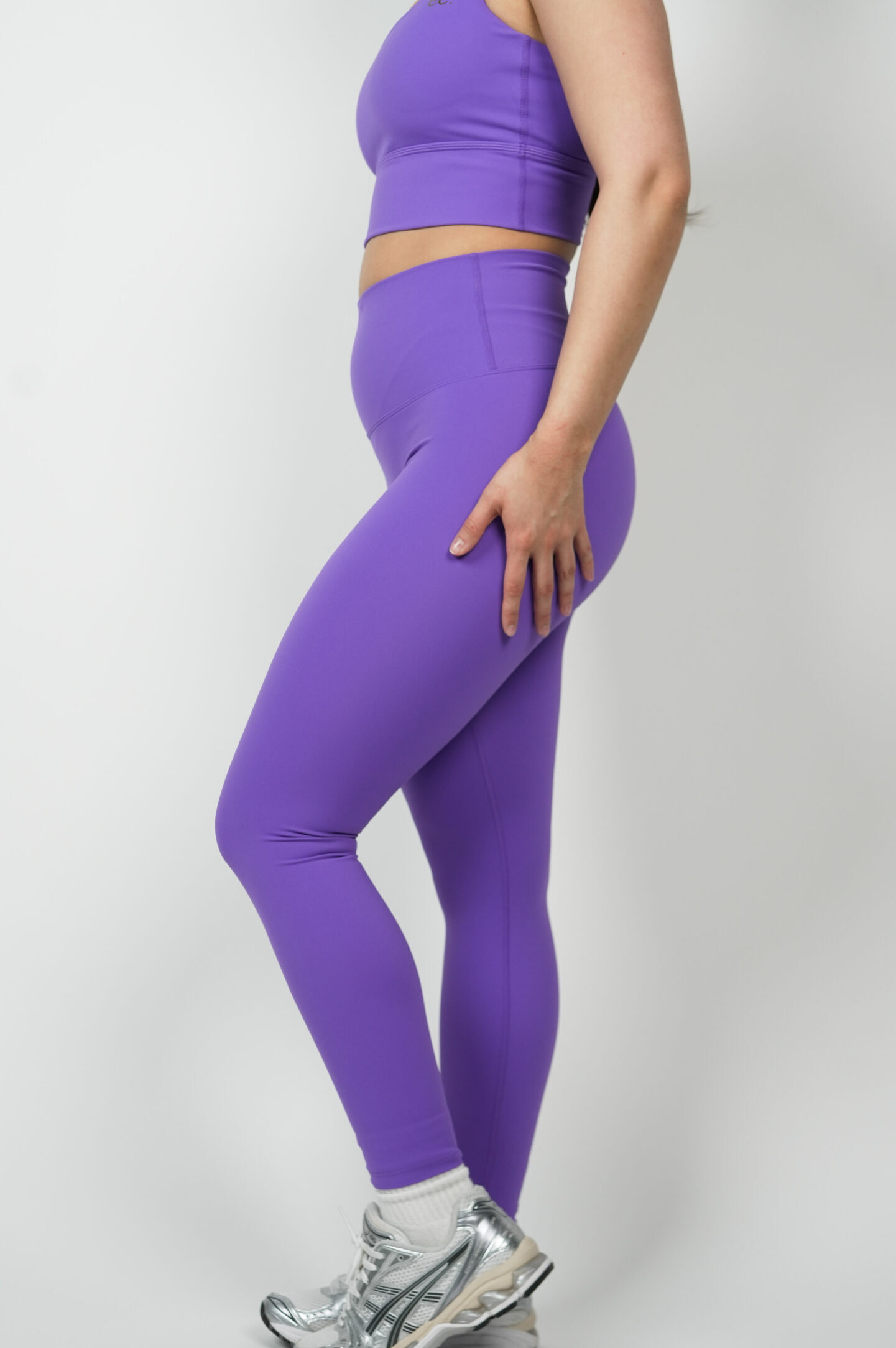 La coupe ajustée du Legging Glow Club – Violet Energy | ambrée. met en valeur la silhouette tout en restant extrêmement confortable.