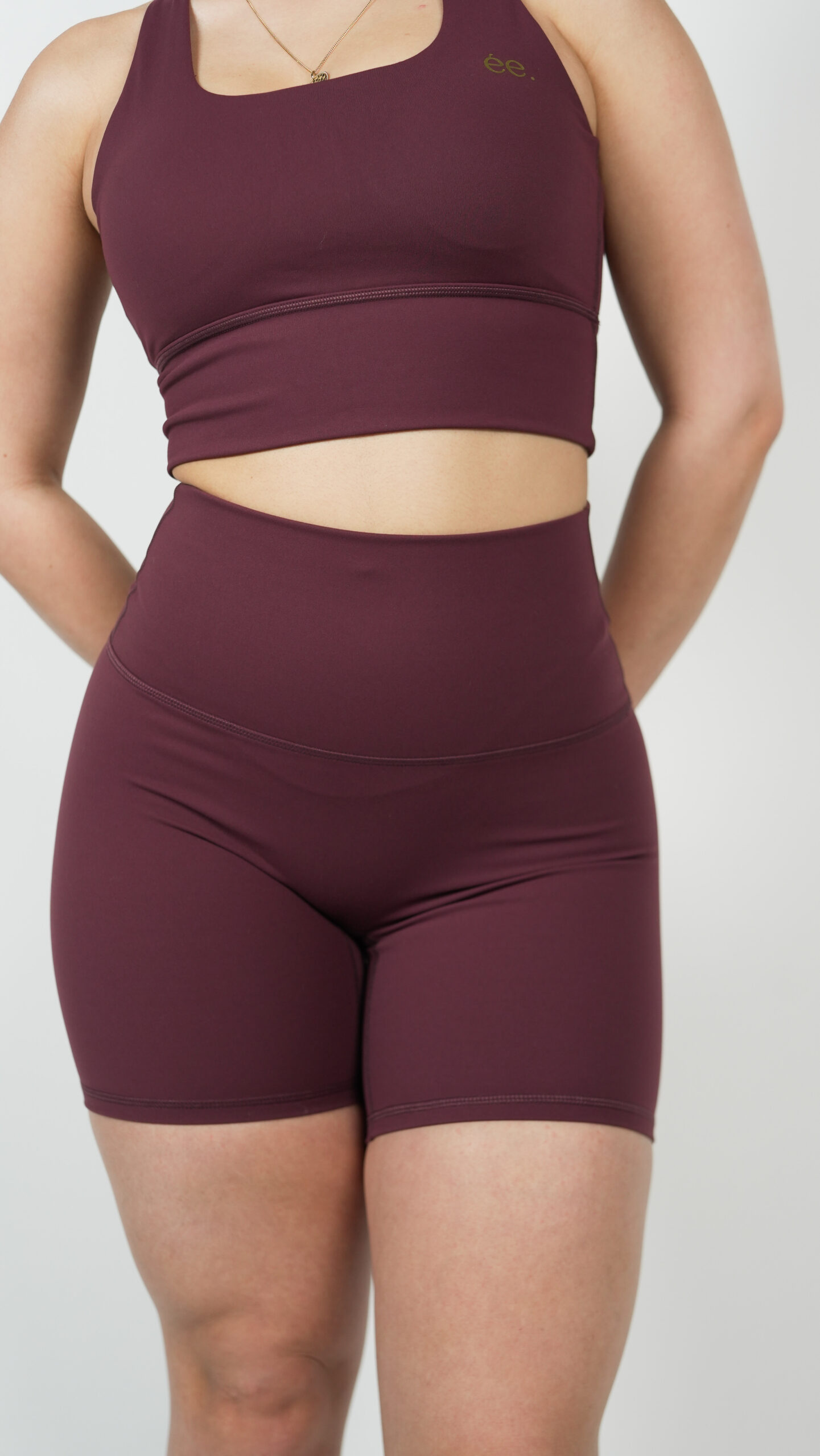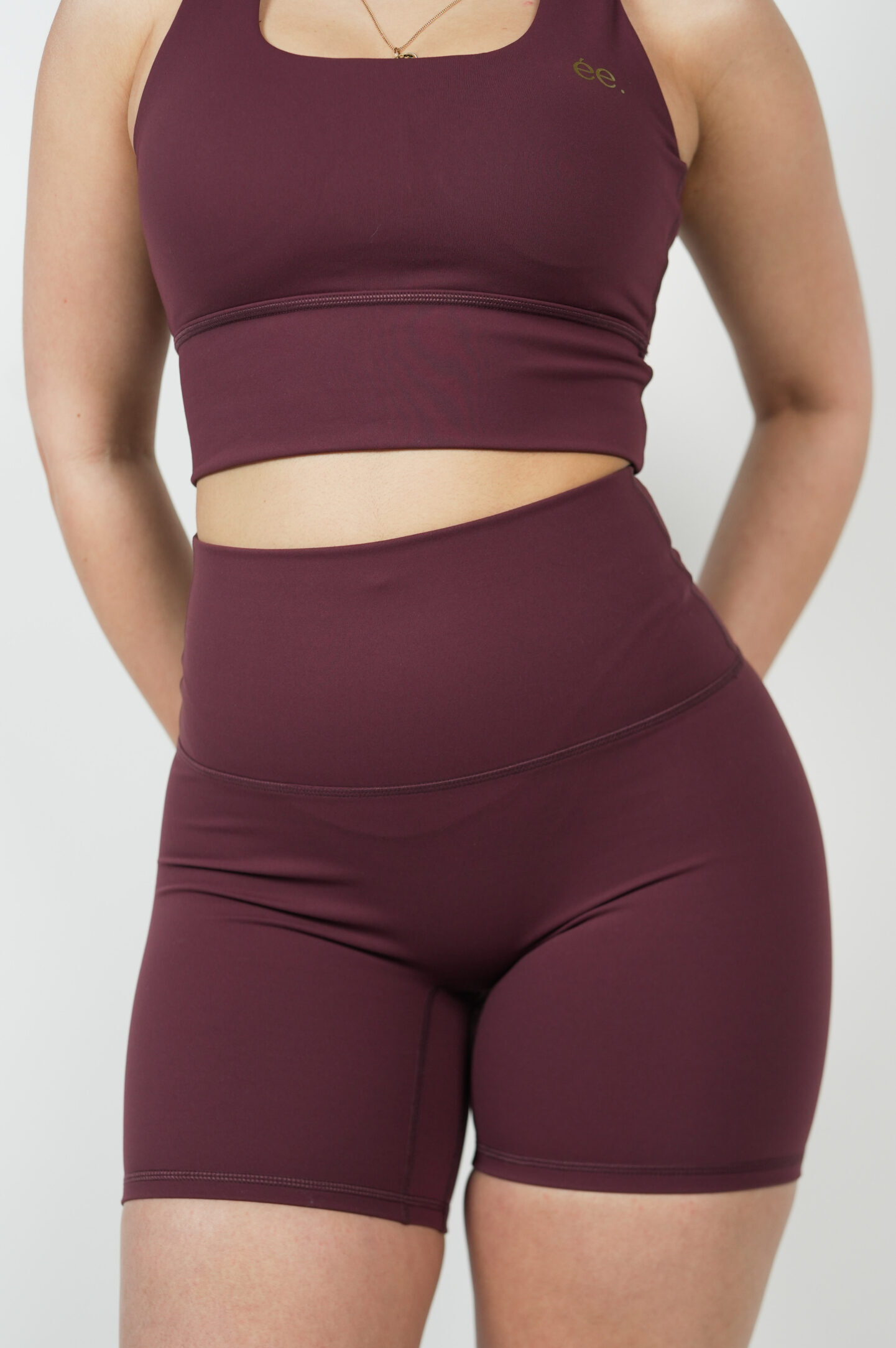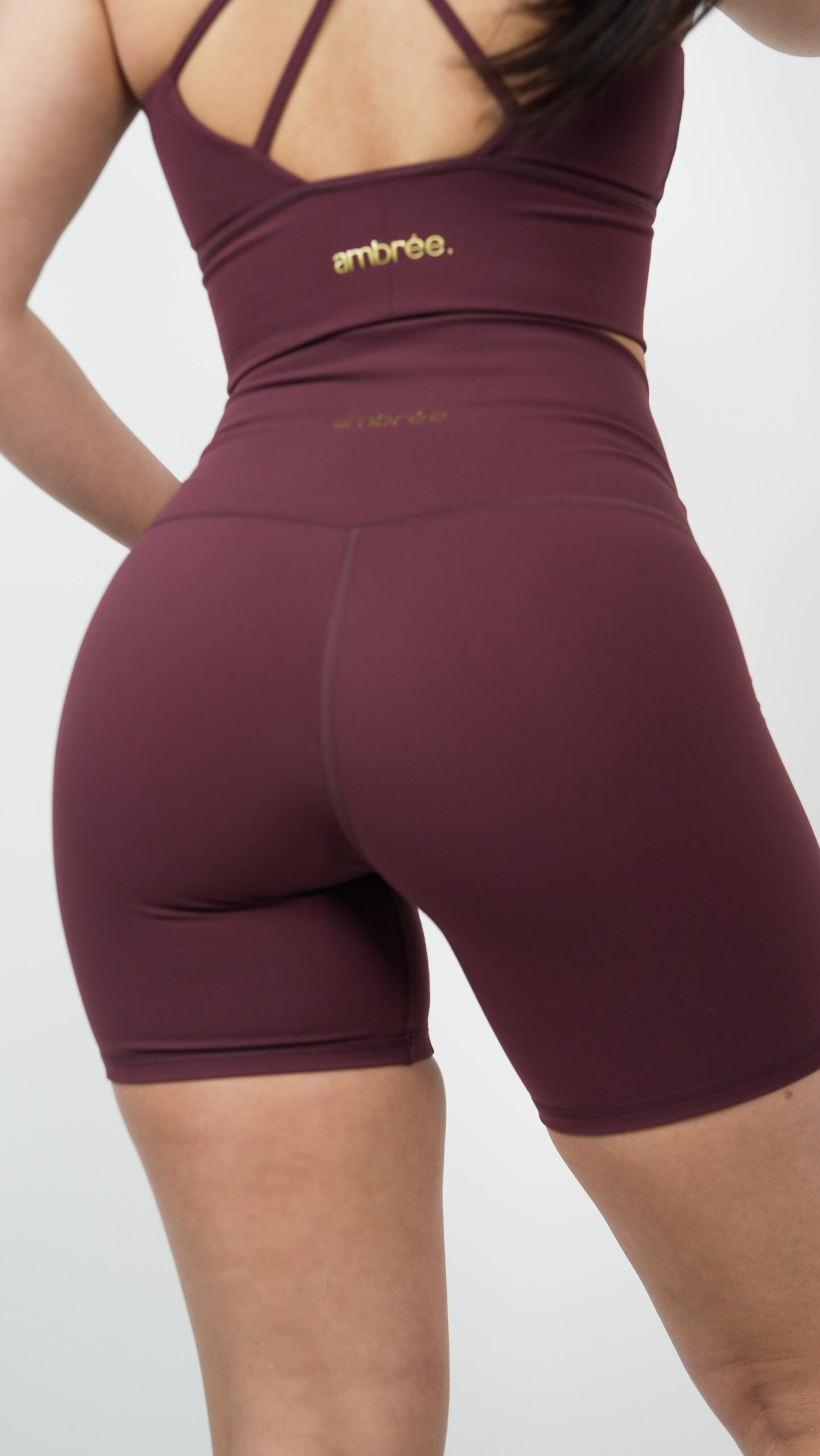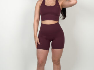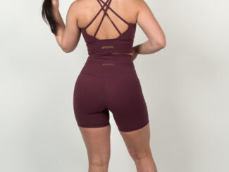 Le Short Glow Club – Bordeaux | ambrée. allie maintien, confort et style. Sa teinte bordeaux profonde apporte une touche élégante et affirmée, idéale pour des looks sportifs modernes. Sa coupe biker et sa matière stretch offrent une sensation seconde peau tout en sculptant la silhouette.