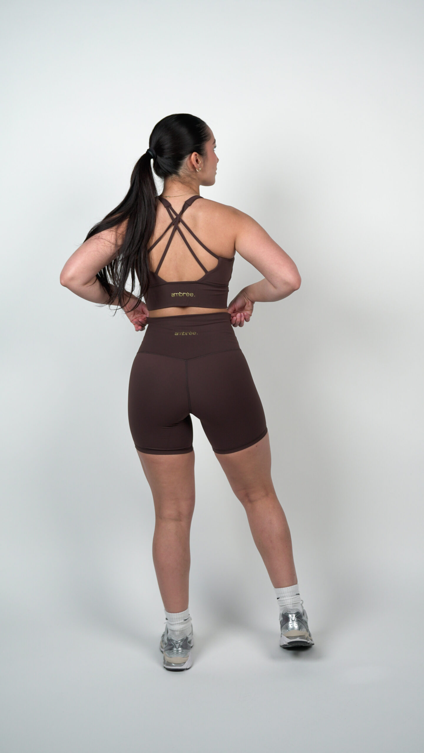 Le tissu du Short Glow Club – Marron | ambrée. est conçu pour accompagner chaque mouvement avec fluidité.