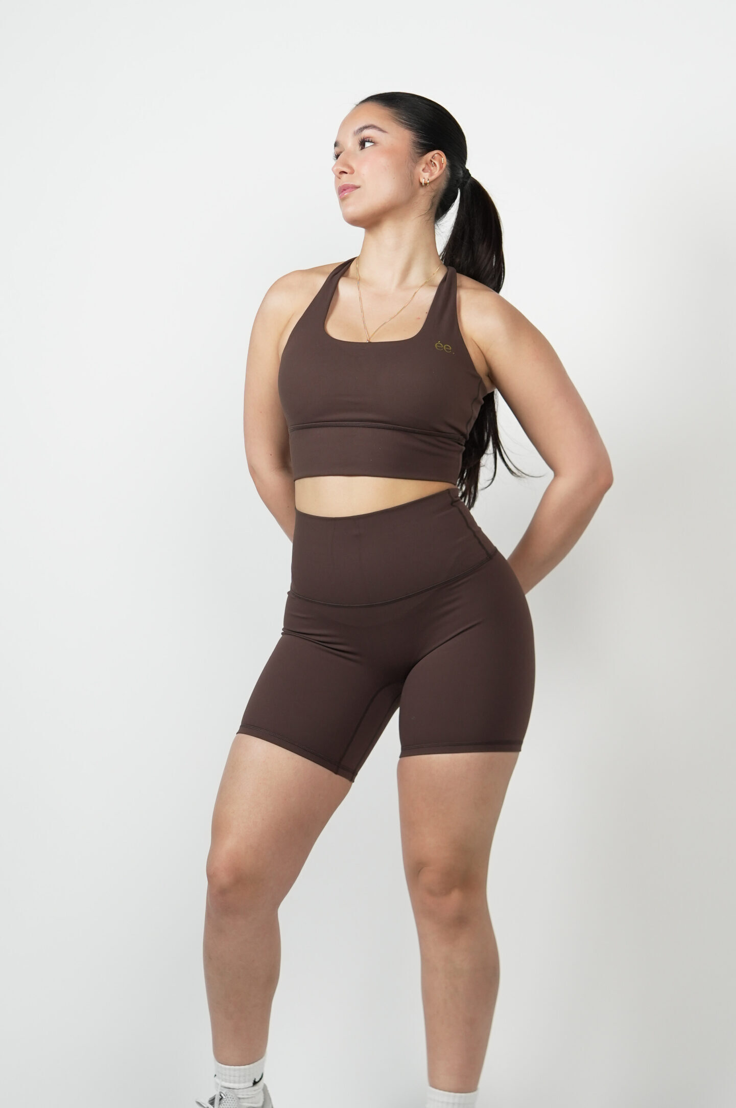 Le Short Glow Club – Marron | ambrée. combine style minimaliste, maintien et confort. Sa teinte marron profonde et naturelle apporte une touche premium et intemporelle, idéale pour des looks sportifs élégants. Sa coupe biker et sa matière stretch offrent un effet seconde peau tout en sculptant la silhouette.