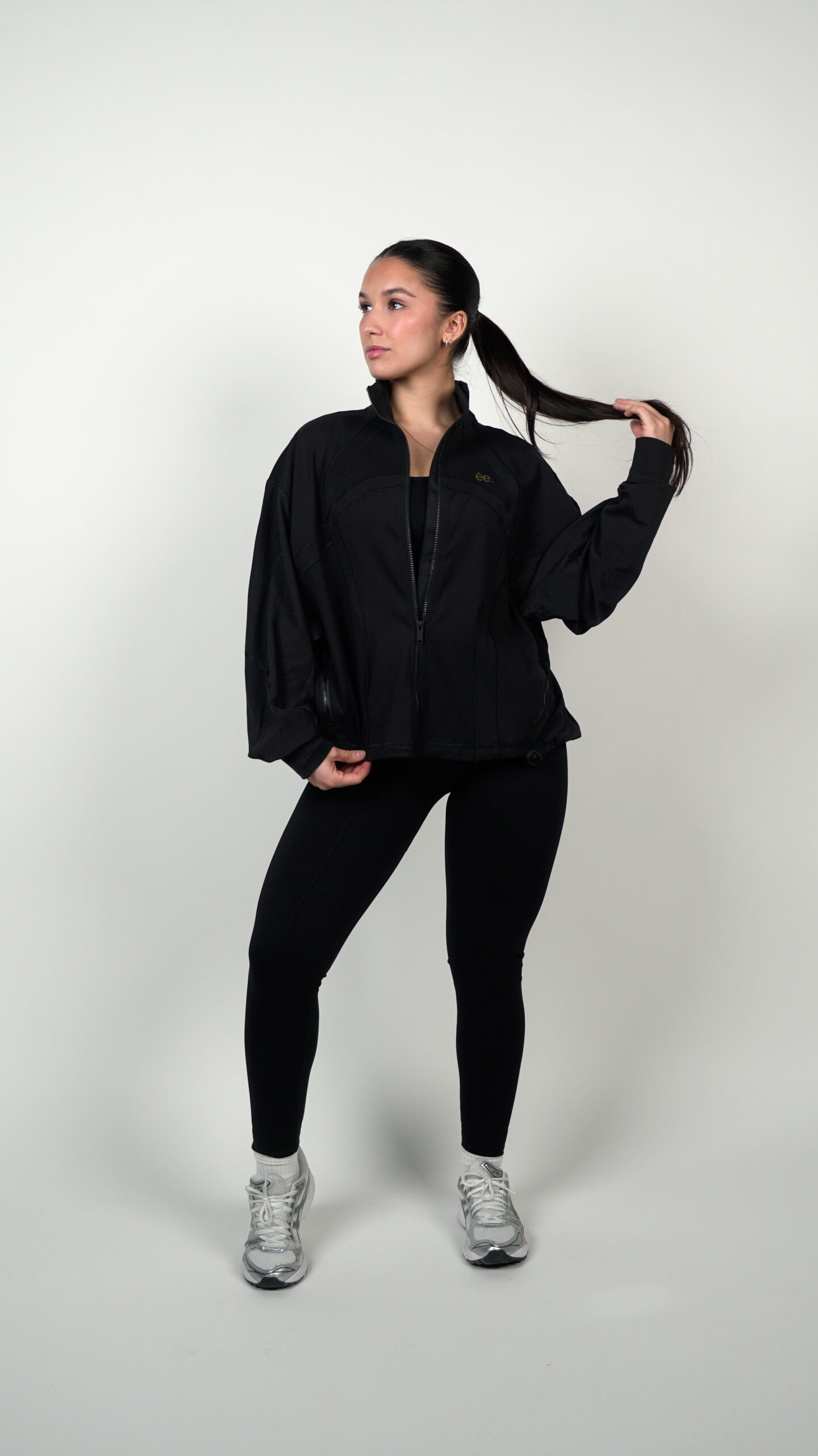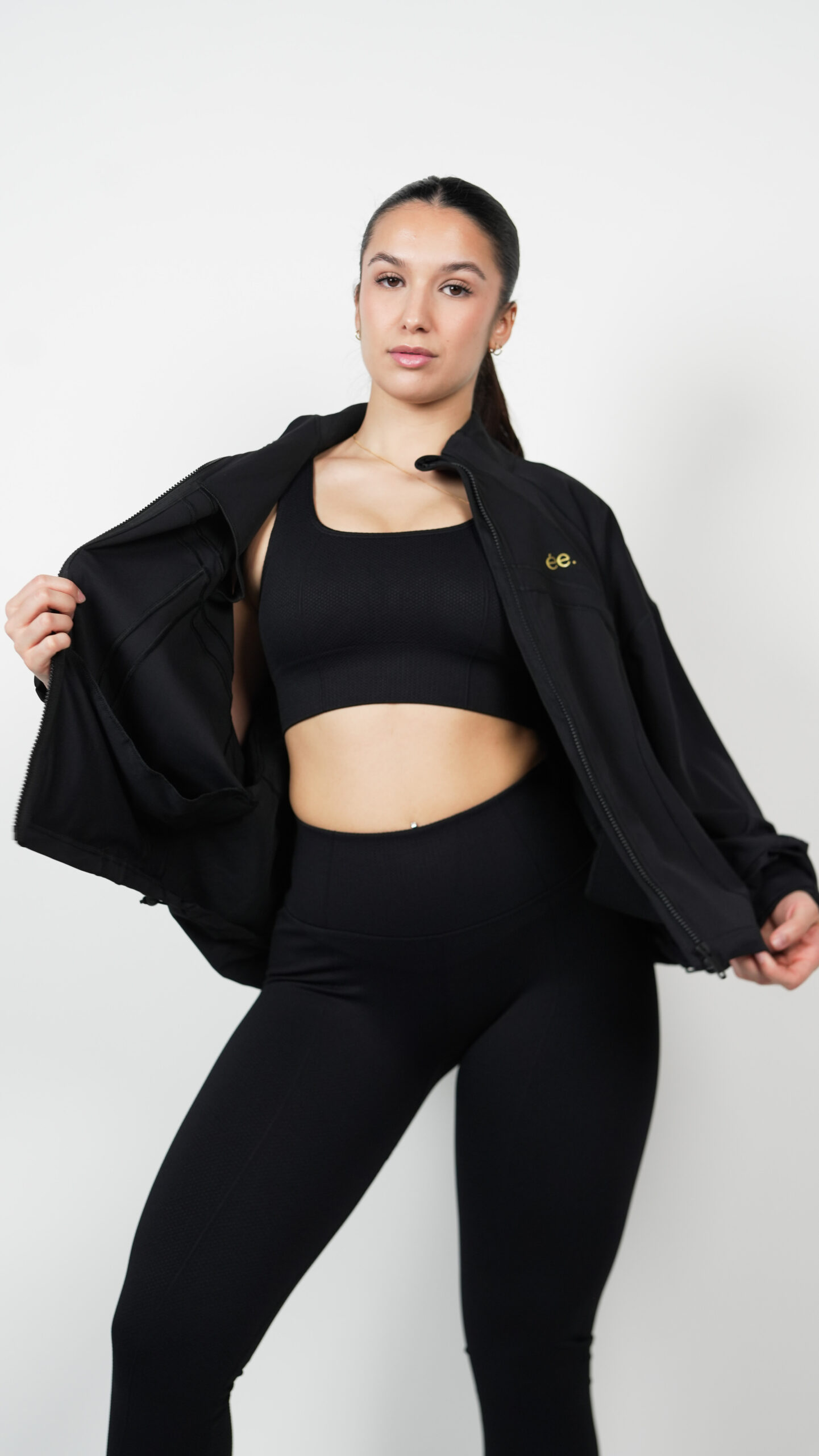 La Veste Glow Club – Noir | ambrée. est une pièce essentielle, pensée pour un look puissant et minimaliste. Sa teinte noire intemporelle apporte une allure clean et affirmée, parfaite pour compléter toutes tes tenues, du training au quotidien.